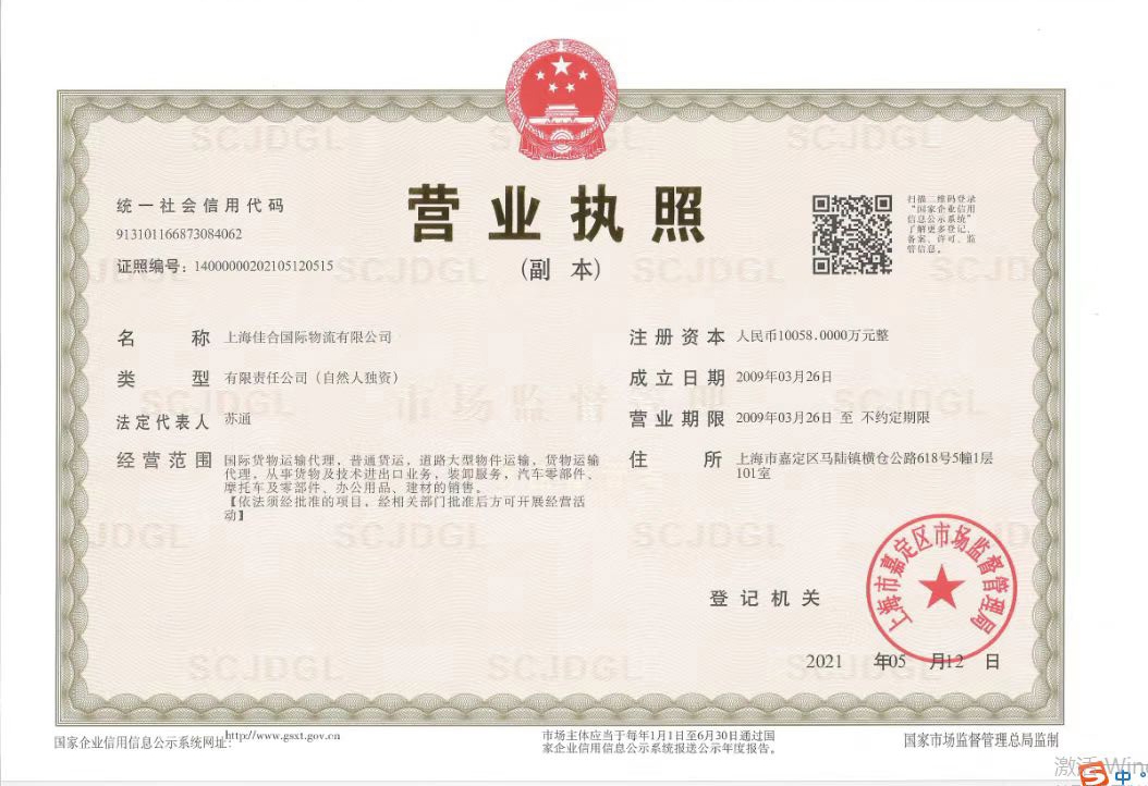 【標(biāo)題】上海佳合國(guó)際物流有限公司注冊(cè)資本10058萬,大型貨物運(yùn)輸資...查看詳情>>>